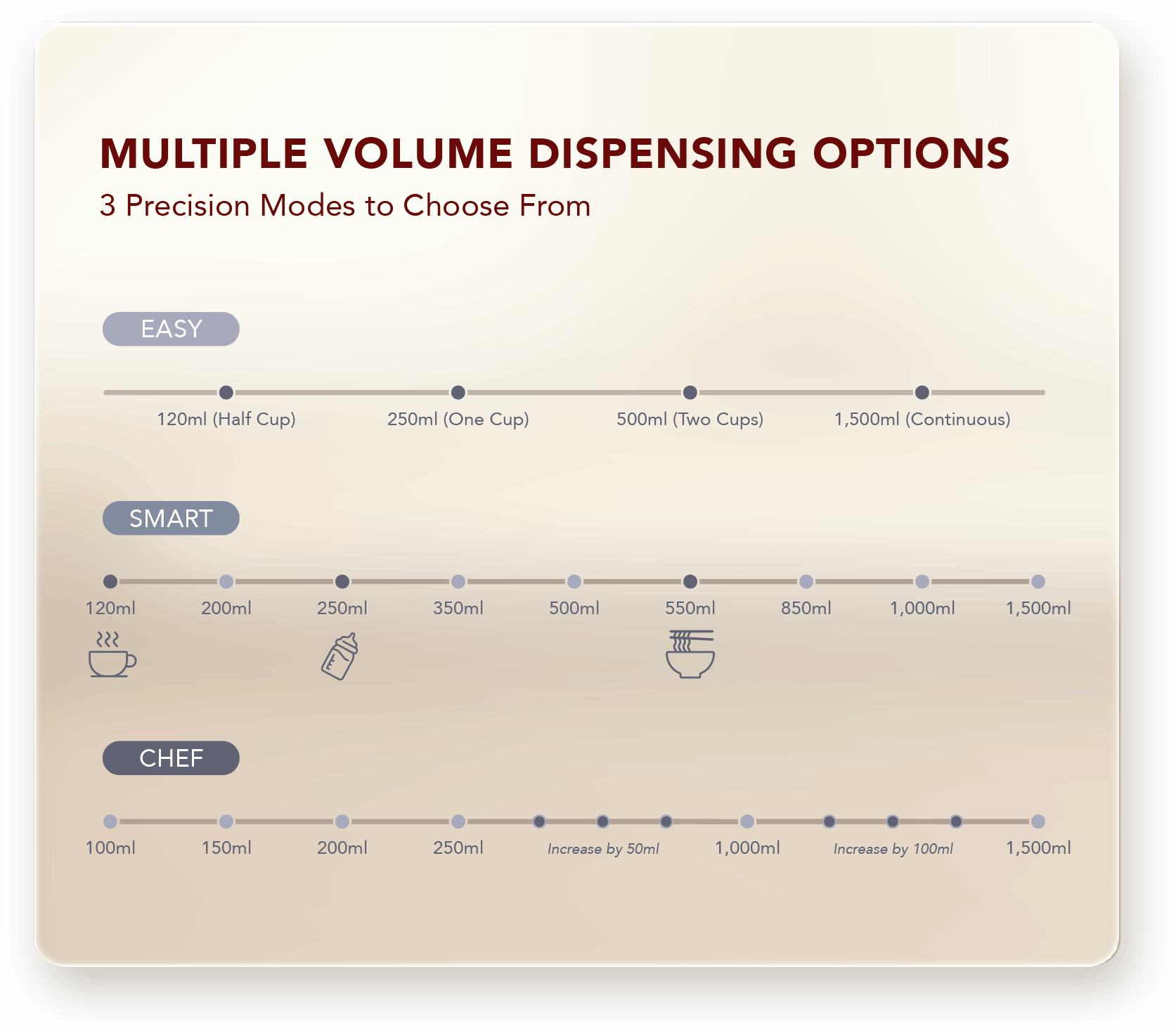 Tiga mod isipadu tepat untuk dipilih — lebih mudah, lebih fleksibel ikut keperluan anda.