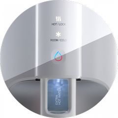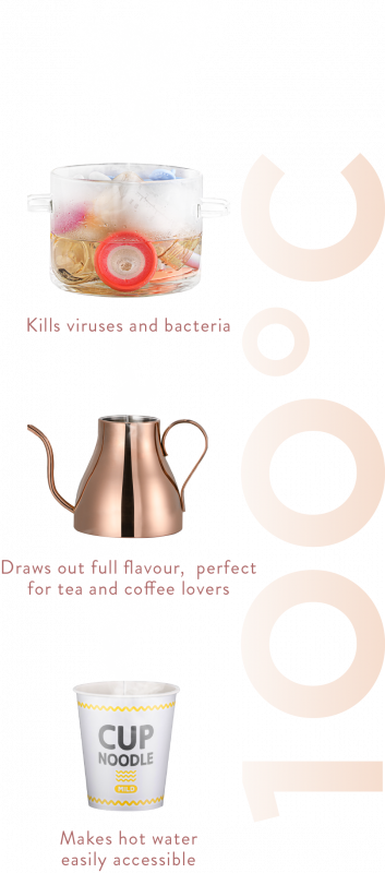 Water is heated to 100°C within the Water Purifier. Temperature of dispensed water may vary minimally as heat dissipates.