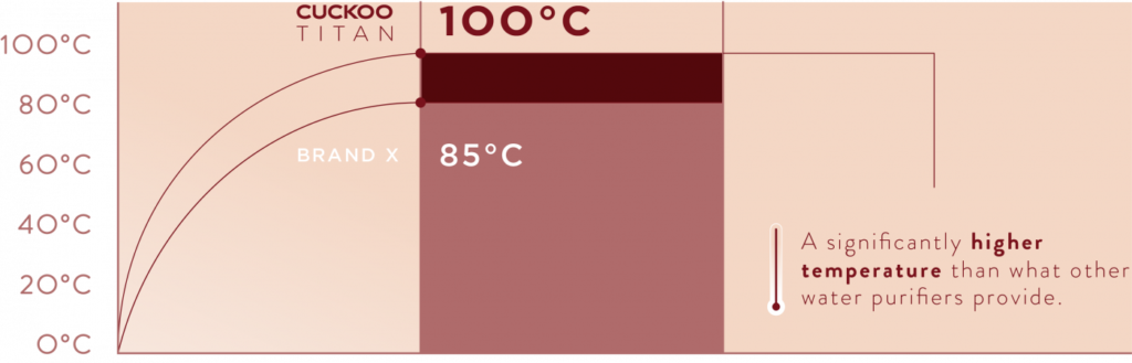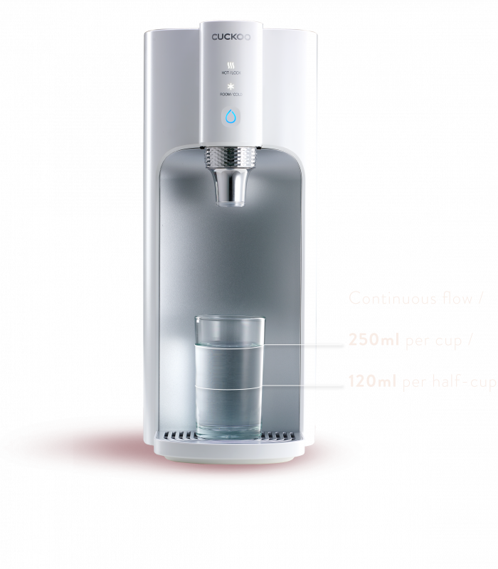 CUCKOO’s very own auto-electrolysis sterilisation technology that periodically cleanses its own pipes and faucet.