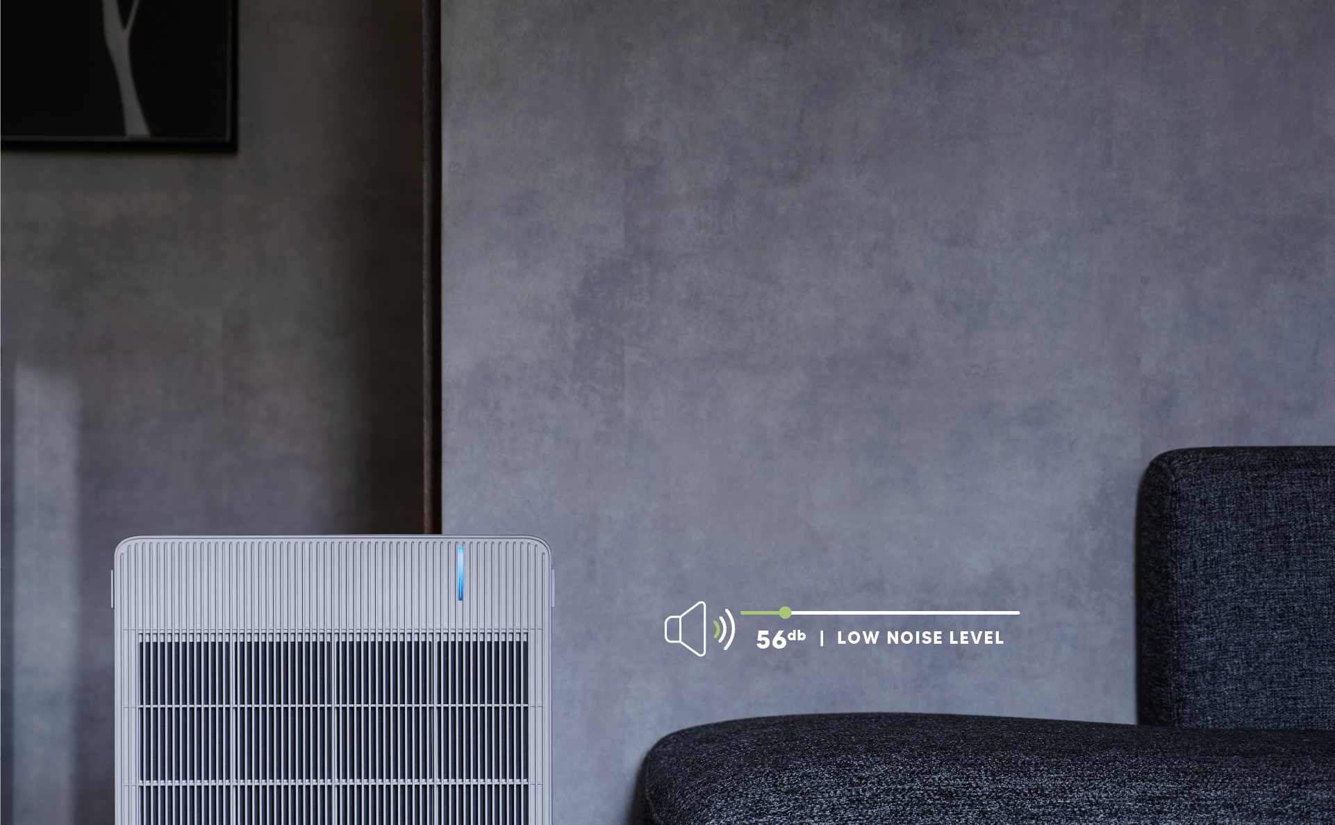 Quietly purifies your home with a low noise level of 56 db. That’s as quite as a gentle breeze!
